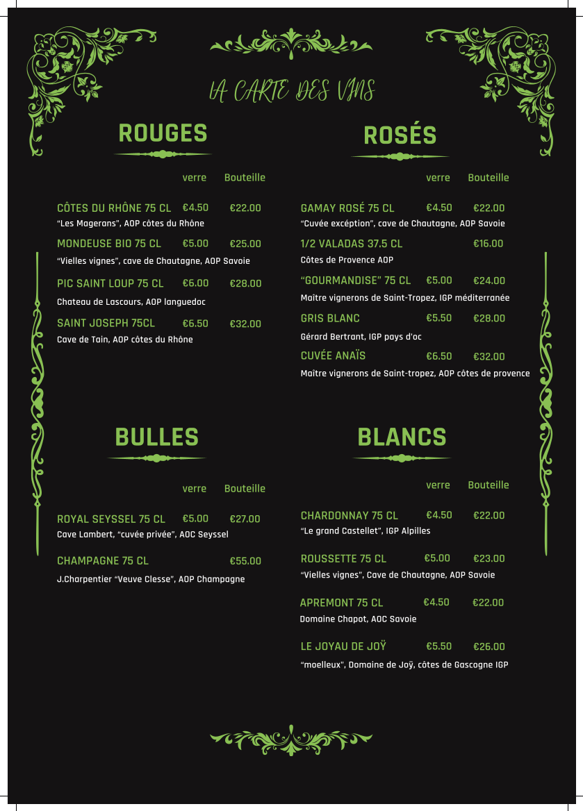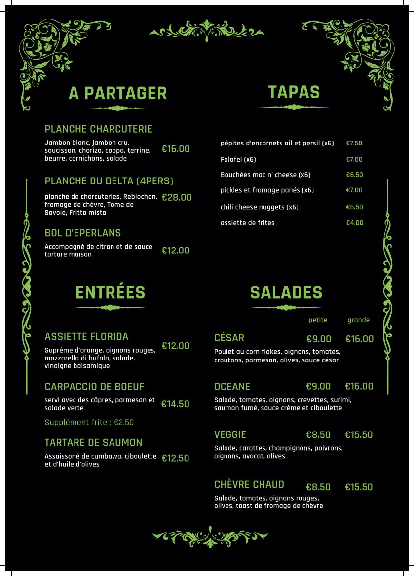 Restaurant Le Delta offers a delightful menu, featuring a variety of carefully crafted dishes that highlight fresh, local ingredients. The standout choices include the Cocktail, a refreshing start to the meal, followed by flavorful mains such as the perfectly grilled fish and hearty meat options. The menu's elegant simplicity ensures that each dish shines on its own, from the rich sauces to the carefully selected garnishes. While the offerings change seasonally, the emphasis remains on high-quality, comforting French cuisine with a touch of modernity. With options for every palate, from lighter seafood to robust meat dishes, Restaurant Le Delta promises a memorable dining experience.